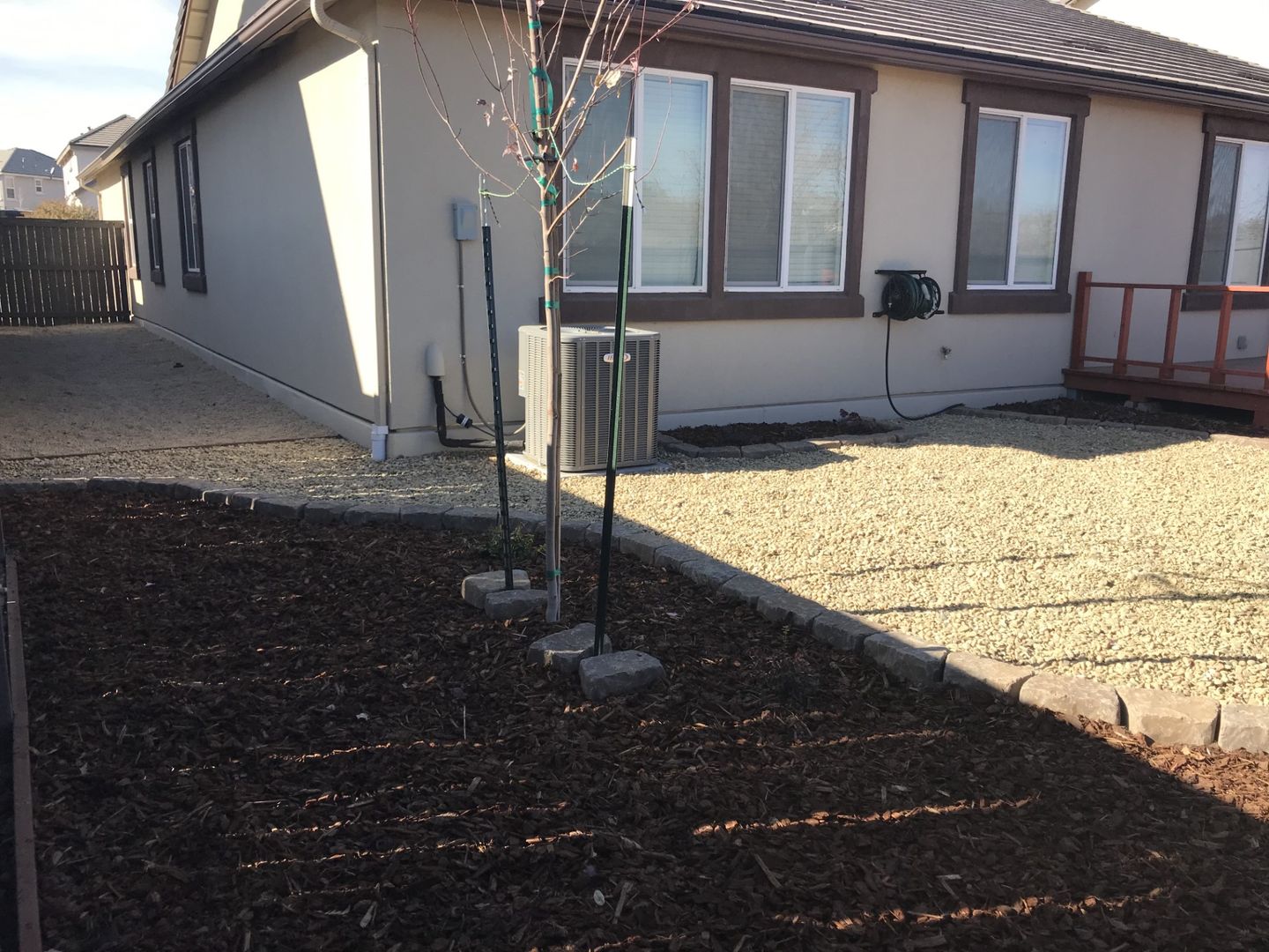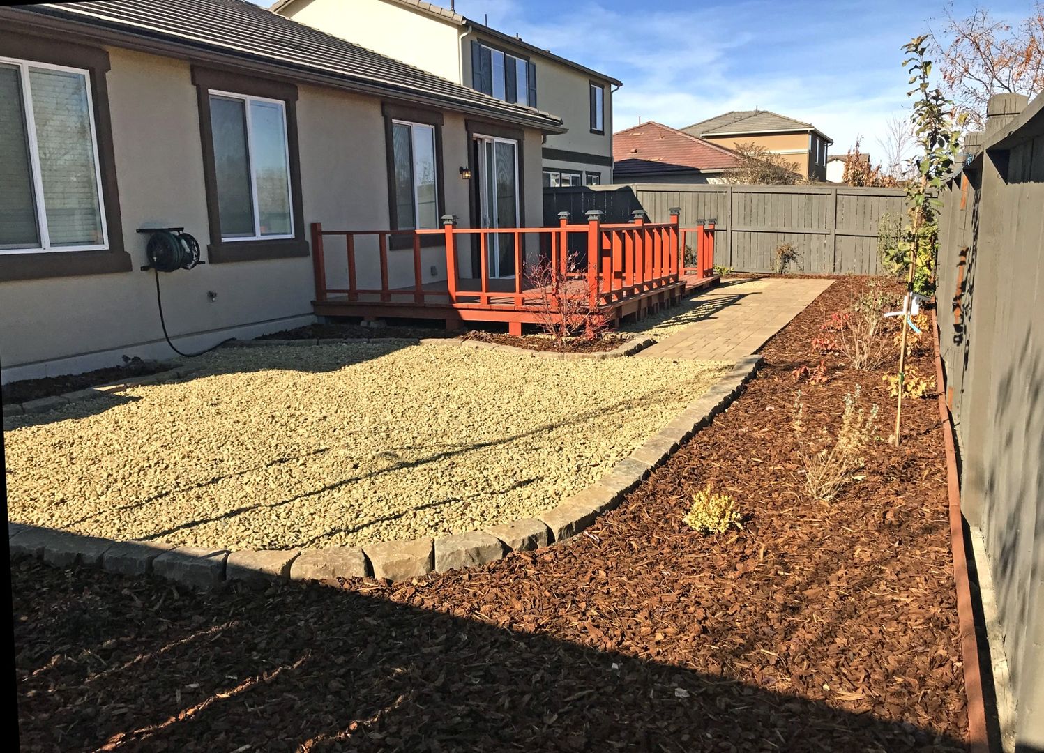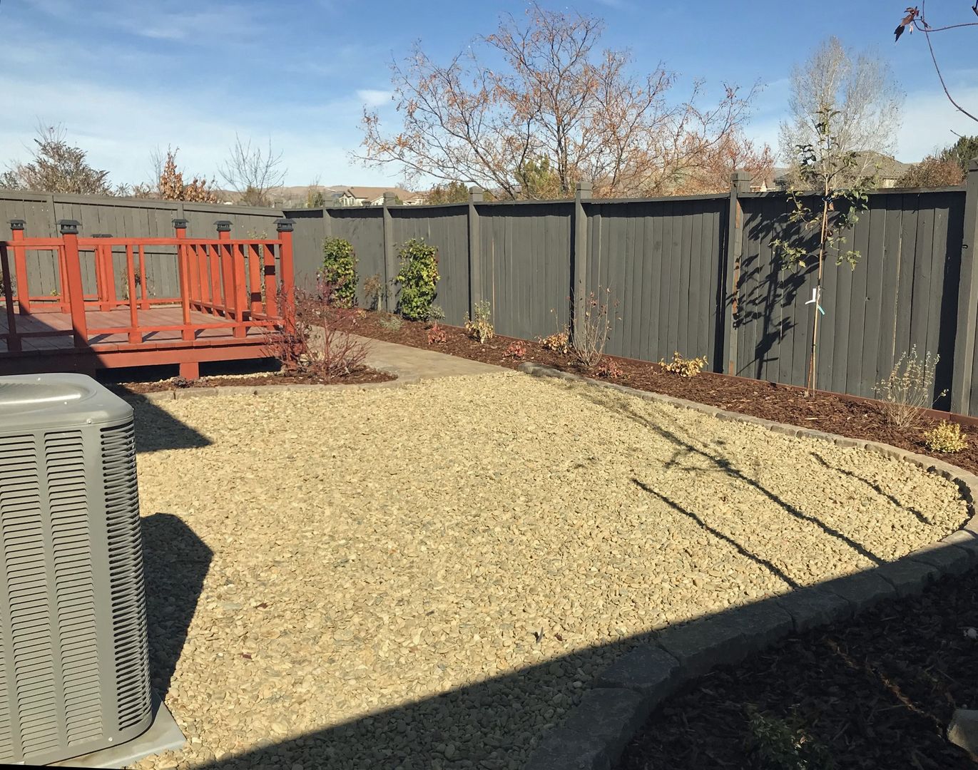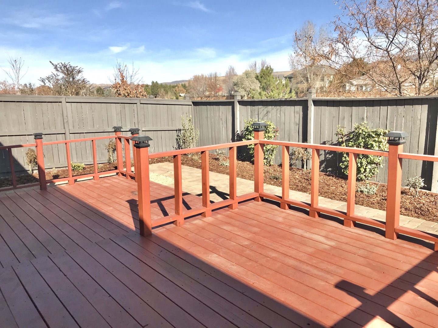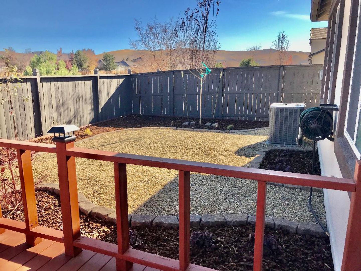 Fully fenced backyard with deck & easy maintenance yard that backs up to wetlands with bicycle path. No backyard neighbors.